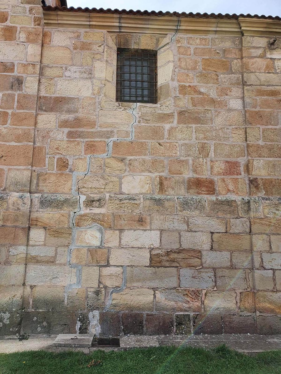 A igreja apresenta uma patologia sob a forma de fissuras nos cantos nordeste da igreja, que faz parte de um edifício anexo à nave central.