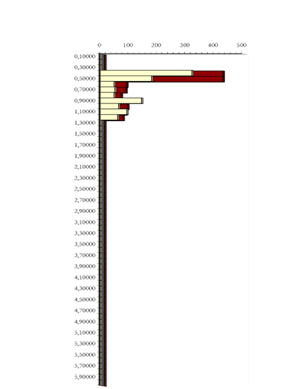 Foram realizados quatro ensaios de penetração dinâmica nas zonas tratadas com o objetivo de determinar as melhorias induzidas pelas injeções de resina em termos de aumento da resistência dinâmica (kg/cm2) do terreno tratado. Uma comparação entre o ensaio inicial e o ensaio final num dos pontos ensaiados é mostrada abaixo.