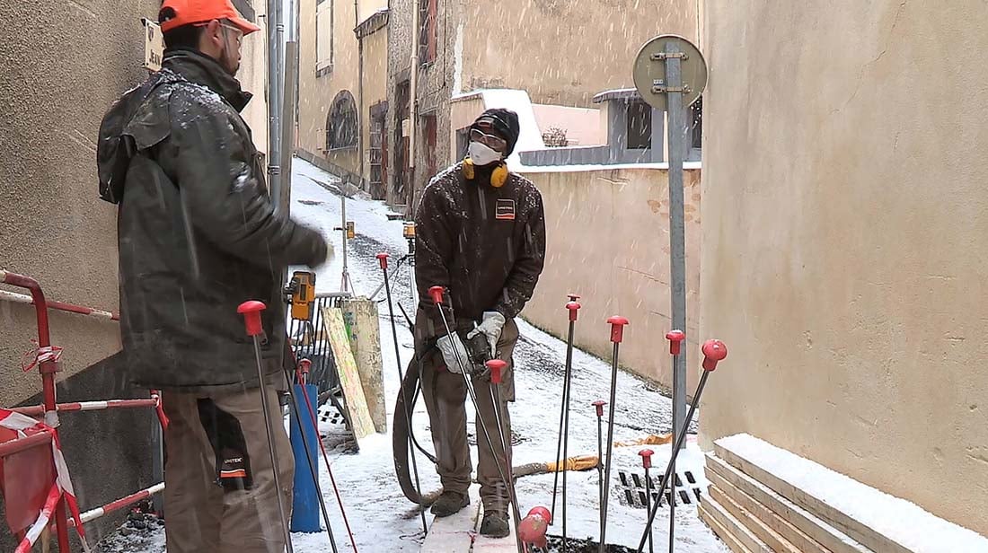 Preenchemos as cavidades com argila expandida e em seguida injetamos uma resina expansiva para melhorar a sua resistência. Usamos materiais ligeiros que não sobrecarregam o terreno subjacente. A expansão da resina torna possível completar o preenchimento na parte superior da cavidade. Se houver um edifício danificado acima da cavidade, consolidamos o terreno entre a cavidade e o edifício usando a tecnologia URETEK Deep Injections®.